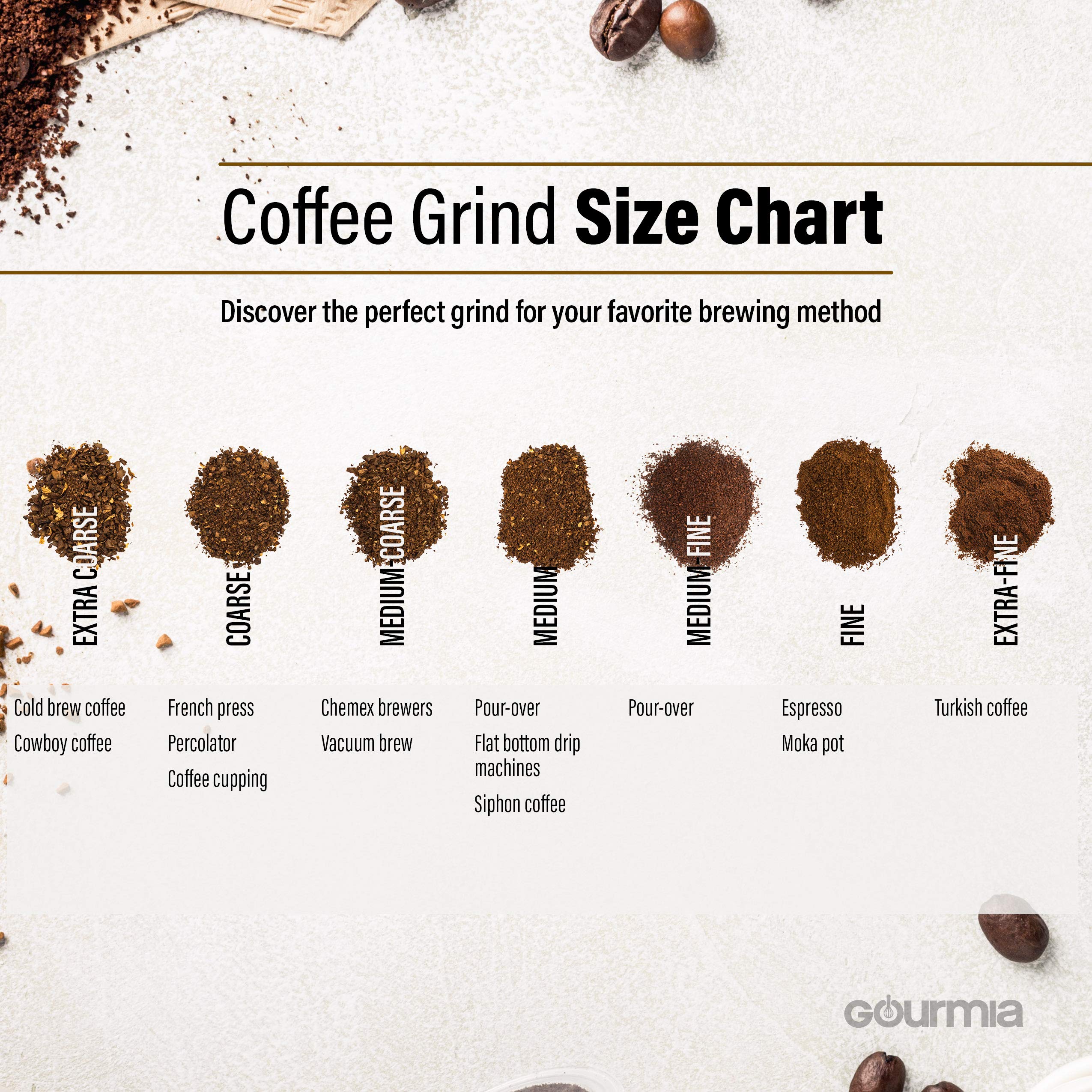 Using a coarse grind allows the coffee beans to brew for 16-20 hours and not be over-extracted. In this chart we have 5 different grind sizes with various uses. Coffee Grind Size Chart A Quick Guide.